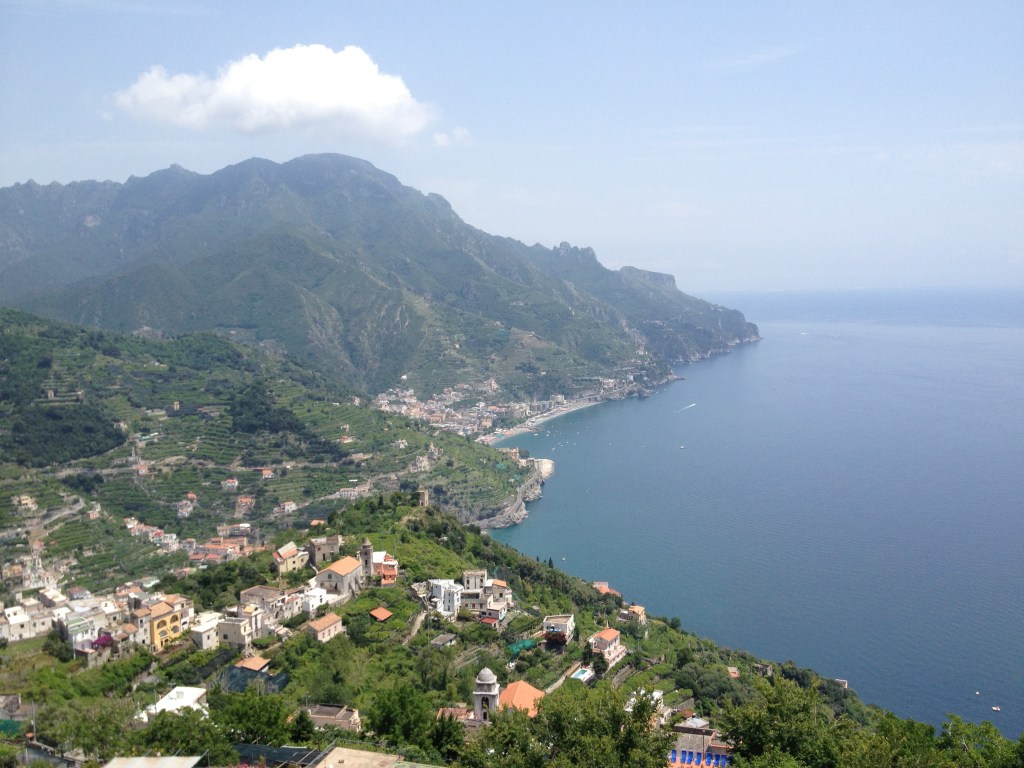 We stopped in Ravello for more beautiful views and a delicious Italian lunch as we relaxed in the centre of town staring at Ravello’s Duomo & surrounding gardens, apparently a filming location for Mr & Mrs Smith although I’ve never seen the movie. The views from this town are spectacular as we stared in awe at below.