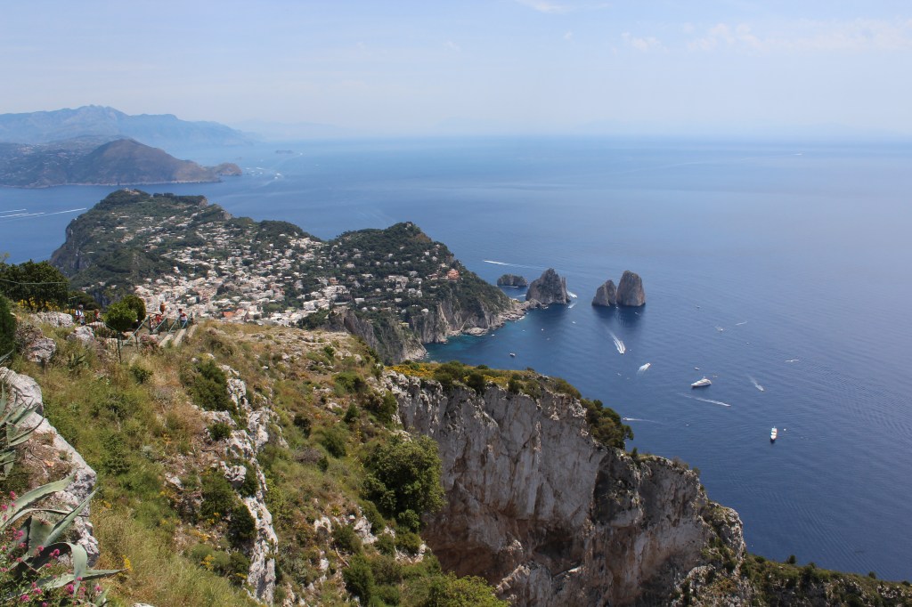 Relaxing & swimming in the beautiful shores near the wharf, we soon got dressed to explore what Capri had to offer. We jumped in a traditional open-air taxi, holding on tightly as the driver navigated the narrow streets before arriving in Anacapri. We jumped on the chair-lift to Mount Solaro for amazing views over Capri and other neighbouring islands such as Ischia where I had visited many years before. The scenery is amazing on this island, but I will be biassed and say that the island of Ischia still beats Capri.