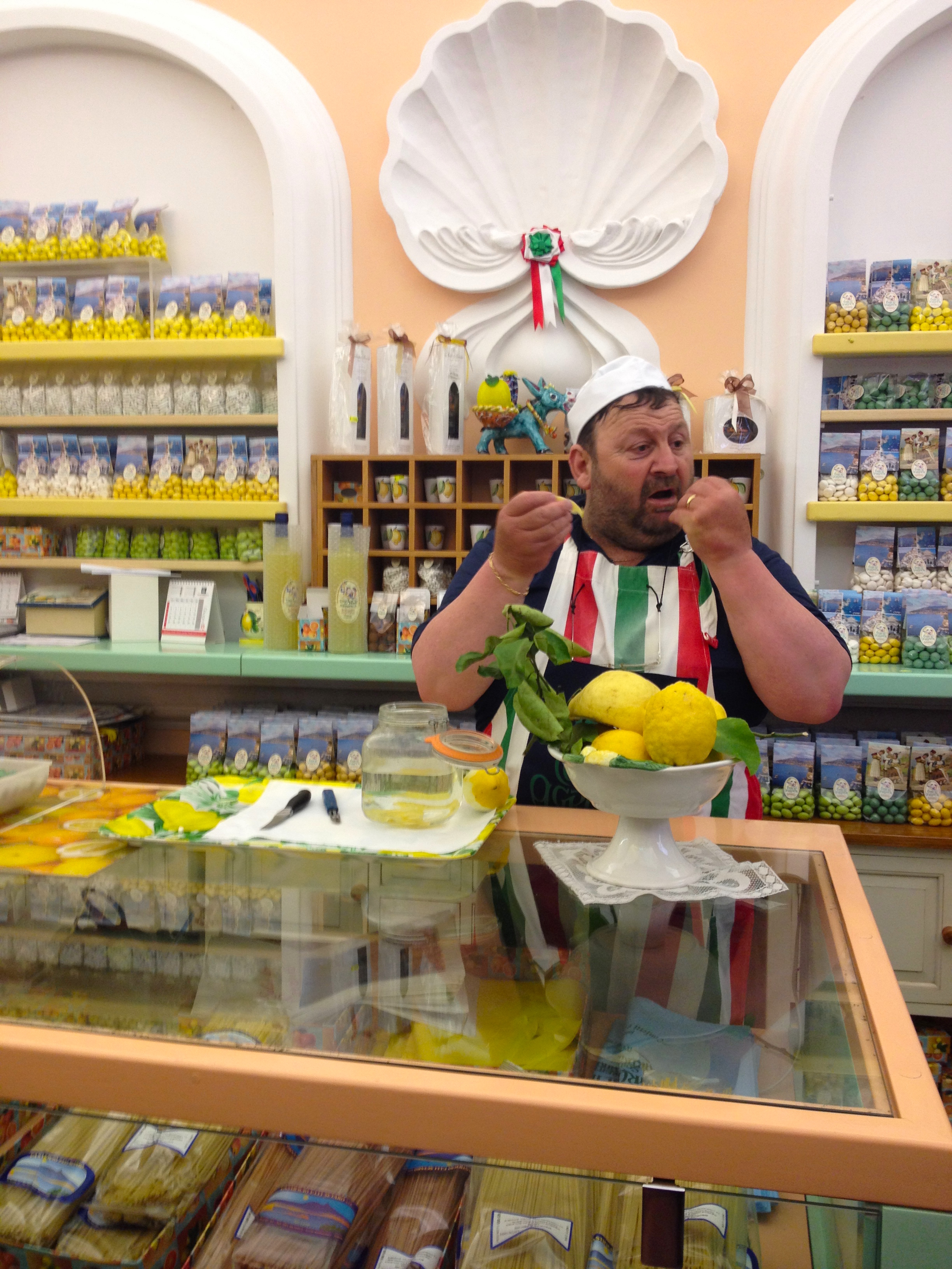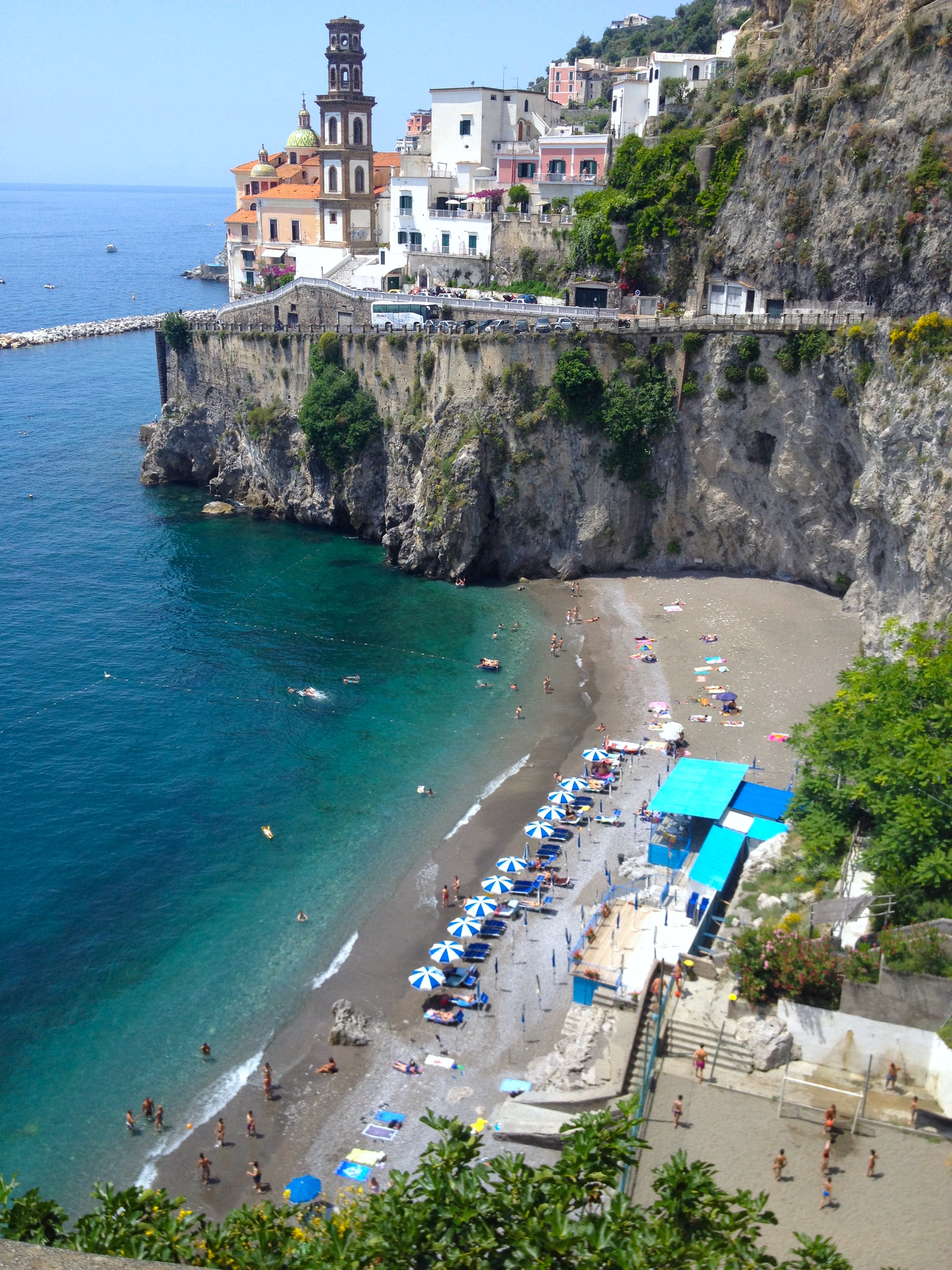 Our final day on the tour had us cruising in the bus along the spectacular Amalfi Coast Road leading from Sorrento. One of the most scenic roads I have ever been on. We almost screamed as our highly skilled driver navigated a bus almost too large for the roads through tiny, almost one-way streets with a sheer cliff drop next to us. The views almost made you forget about the danger! We joined a boat cruise down the coast, past Positano and Amalfi where our guide pointed out houses who belonged to the likes of Sophia Loren & Gina Lollobrigida, Italian TV celebrities I grew up with – although not many others knew who our guide were talking about.