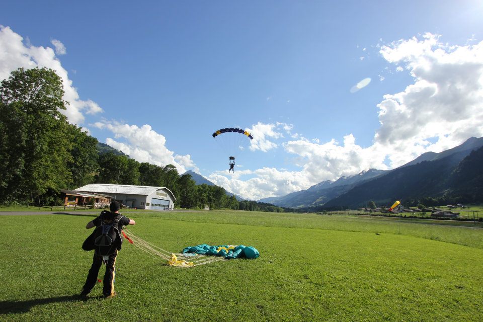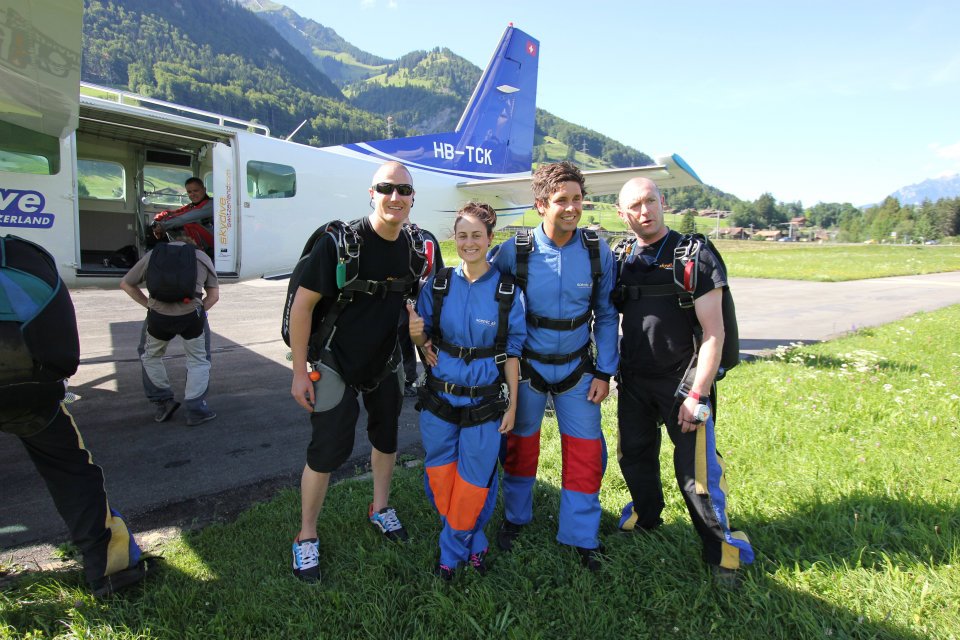 We caught the train into Interlaken to meet our transfer to Outdoor Interlaken. Wade & Rhiannon signed their declaration forms and I came along in the van to watch! As we continued down the road, I was staring at the beautiful scenery out the window then the words escaped my mouth… ‘Can I skydive too?’