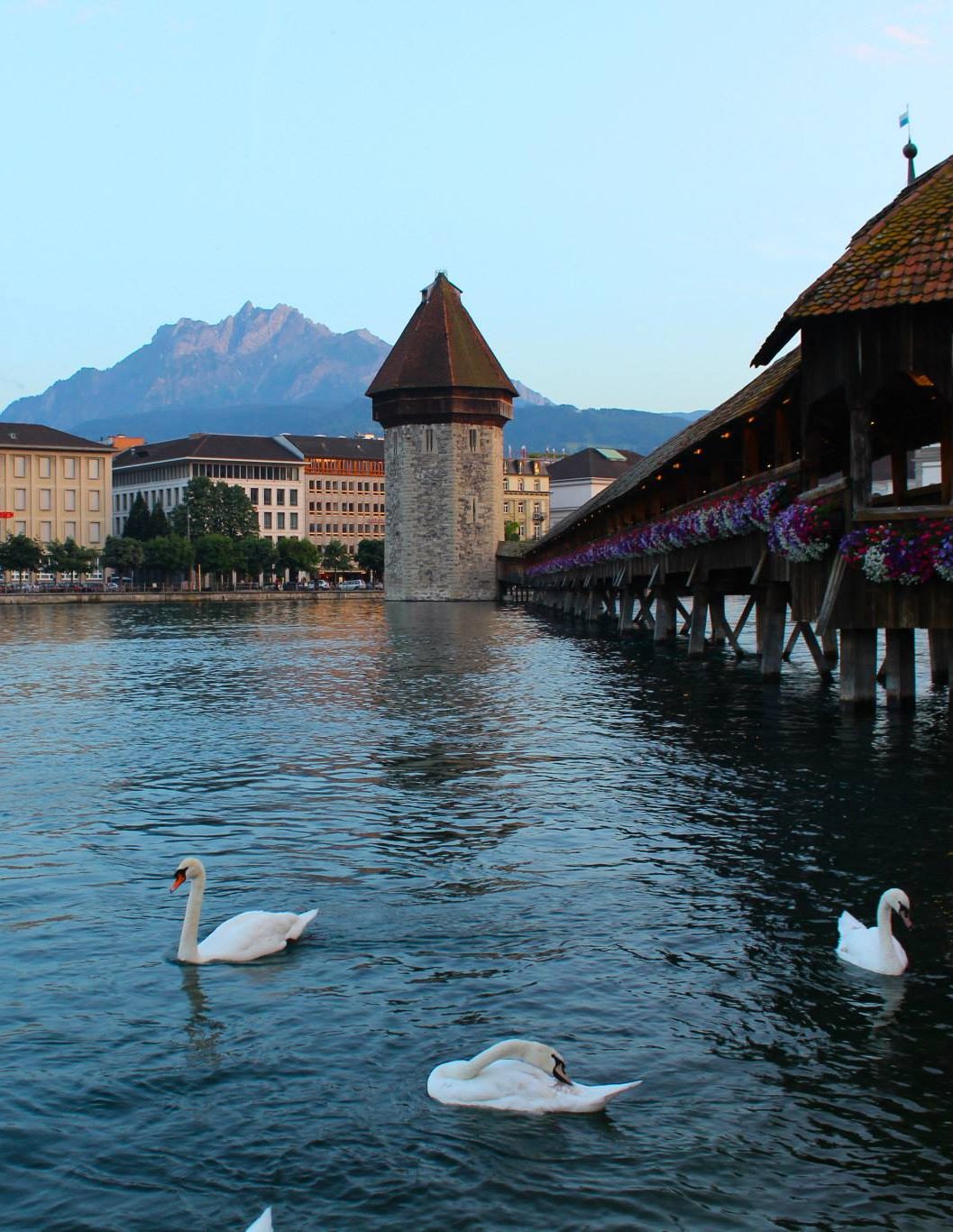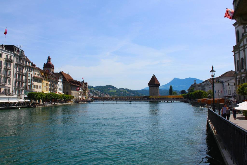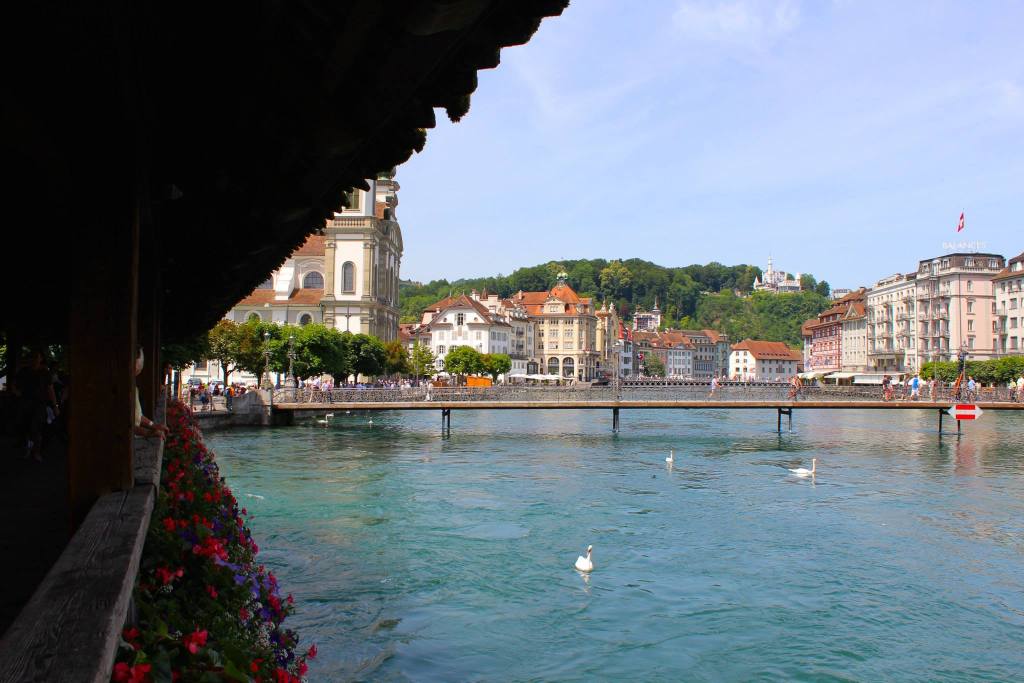 The scenery beyond the window on our short train journey from Interlaken to Lucerne was enjoyed as we continually spoke about how we just skydived in Switzerland! We explored the streets of beautiful Lucerne, walking along the Reuss river and Kapellbrucke wooden footbridge that crosses it.