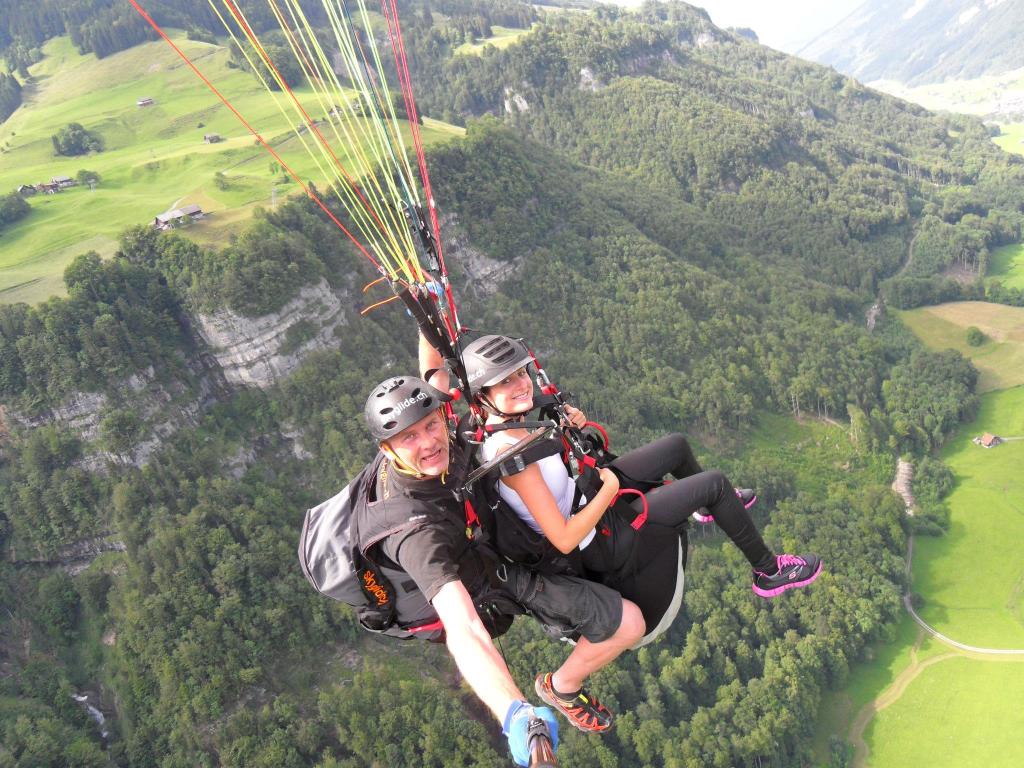 We booked our experience with SkyGlide Paragliding Lake Lucerne at a local travel information desk. Our guide Dani picked us up, along with another two passengers & we were on our way! The wind had changed so we were unable to paraglide over Lake Lucerne itself but a different valley that welcomed us with beautiful mountains & waterfalls! Tandem paragliding was amazing, as Dani strapped me into the seat along with him. We started running fast towards the edge of the mountain, the cliffs edge awaiting our presence. ‘As fast as you can, otherwise we won’t make it off’ Dani yelled and soon enough we lifted off and we were gliding through the air – amazing!! I really recommend booking your experience with Dani if you are in Switzerland.