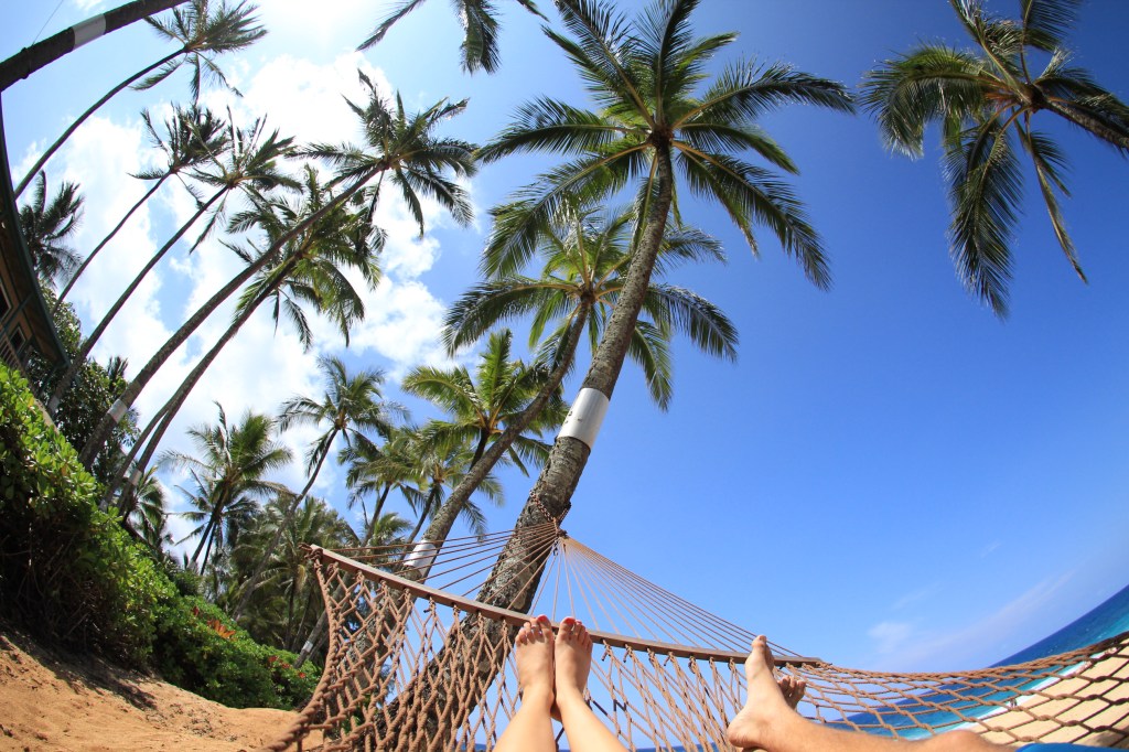 Ke Iki Beach Bungalows on the North Shore of Oahu is where we spent our two weeks, a self-contained apartment with garden views only short steps to the beach. We relaxed in hammocks on the beach out the front of palm-fringed bungalows, affected by jet lag but enjoying the sea breeze as we awaited check-in. Staying a few beaches from Pipeline, it was amazing watching the huge waves & Hawaiian dare devils surf them.