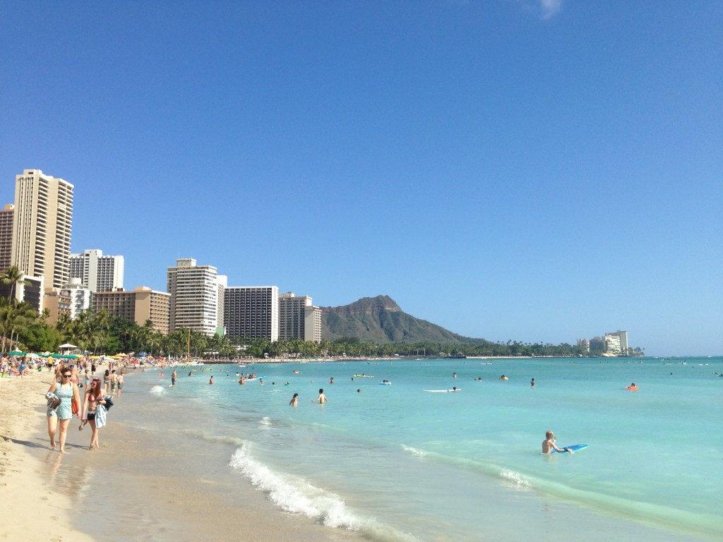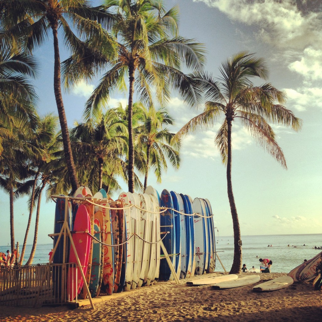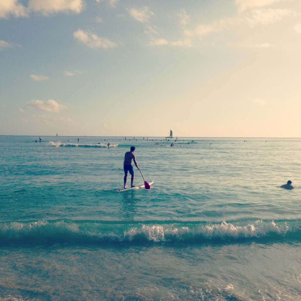Picking a spot on the sand to relax, Wade head to a nearby shack to hire a stand up paddle board. Kiah & I decided to hire a long board. The boards were so huge, the only way we could get them to the water was by dragging them! Before we knew it we were out the back on Waikiki beach yelling out to Wade as we realised how big the waves were (to us anyway). Wade heard us yelling & was amazed that we were so far out, laughing that we didn’t even have our leg ropes attached! It was such a fun afternoon catching waves & getting dumped by them.