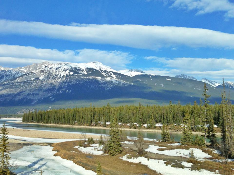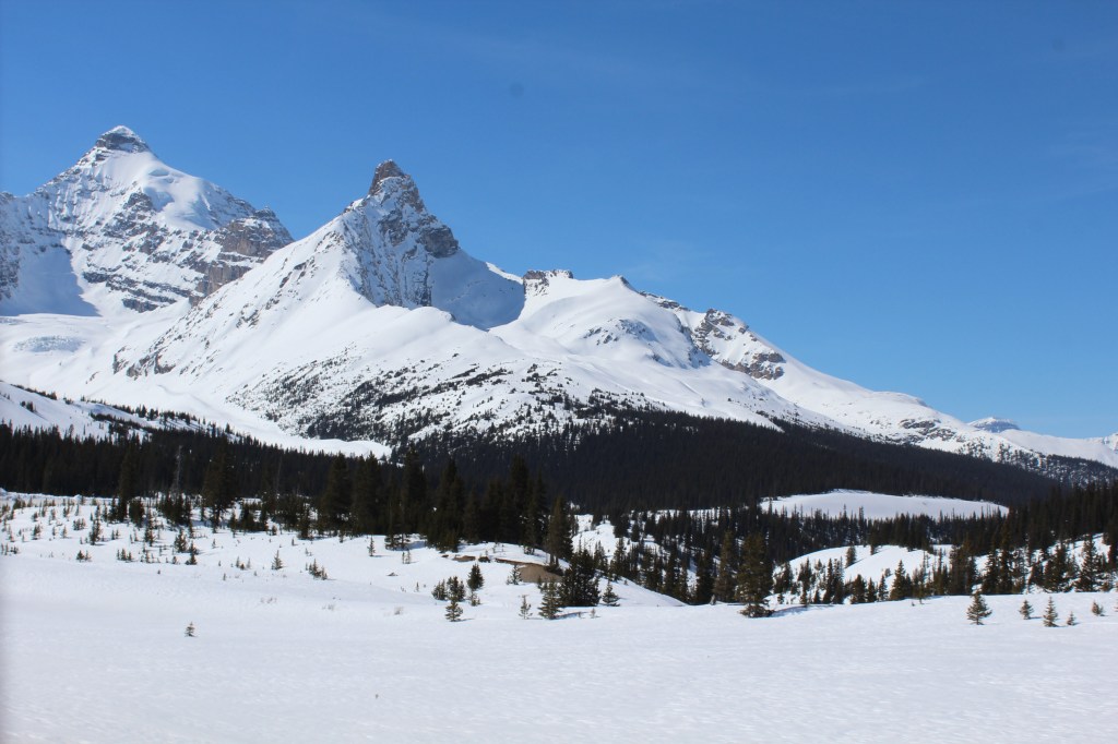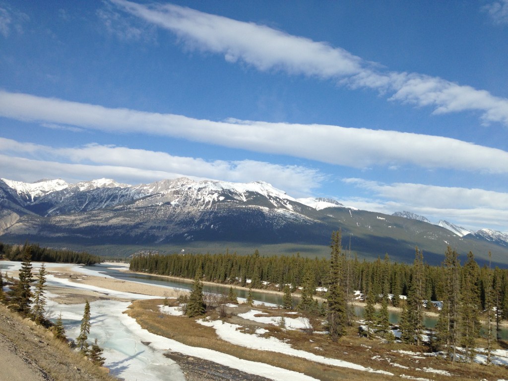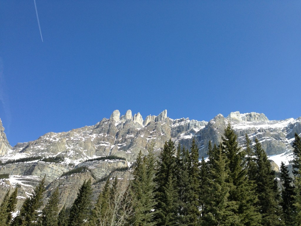 We were headed north on the Trans-Canada Highway, amazed at the amount of snow and beautiful jagged mountain peaks we were passing.