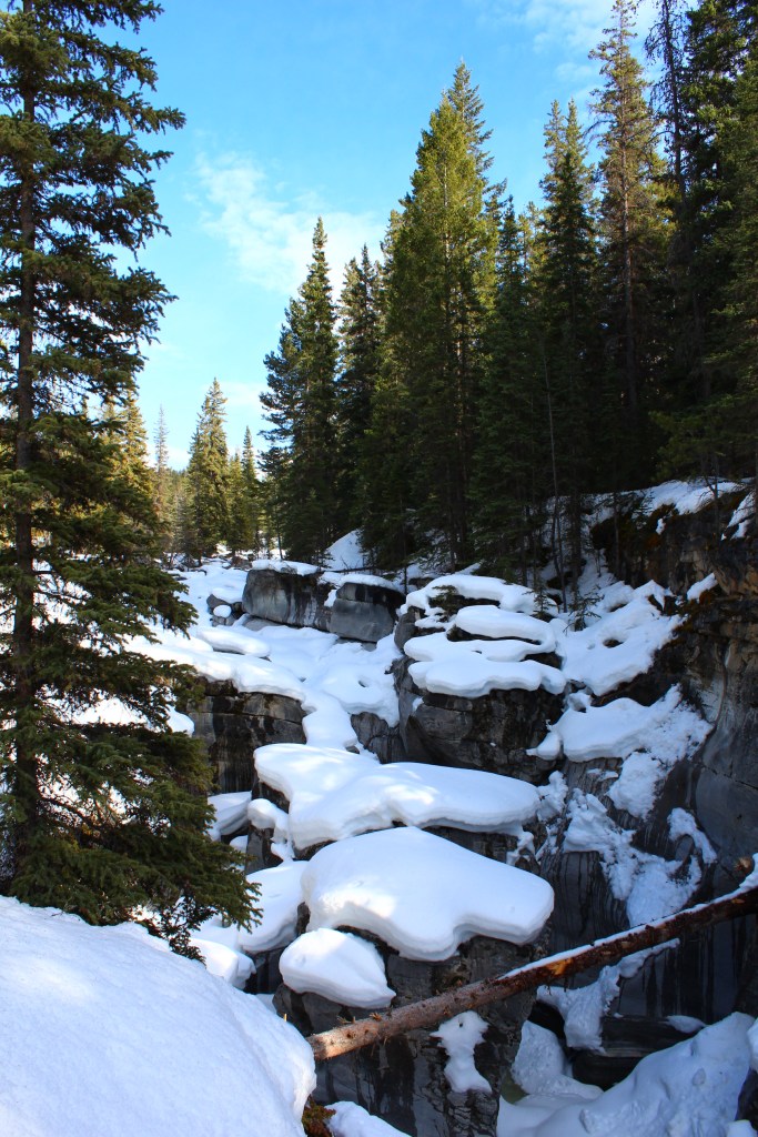 We passed many mountains, lakes, rivers and waterfalls – Canada really has it all. First stop, Yoho National Park where we explored Natural Bridge and Emerald Lake. The lakes were partially frozen and honestly nothing could of prepared us for the snow-covered beauty we were seeing.