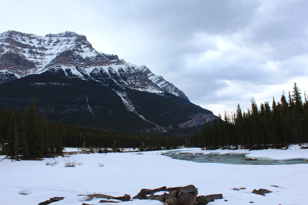 We were on the drive south, feet soaking wet from our damp shoes from the many treks through snow. We were just coming up to the Big Bend near Parker Ridge when our tour guide John pulled over to the side of the road and yelled ‘let’s go!’ We looked out the window at more snow and moaned that we had had enough for one day. He promised us that this was one walk we did not want to miss.
