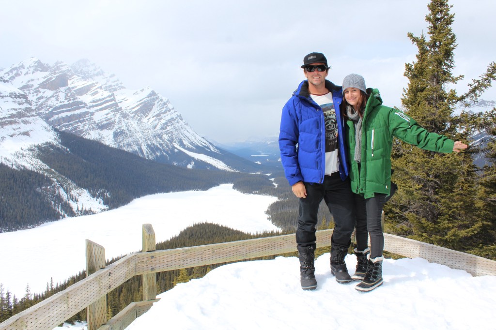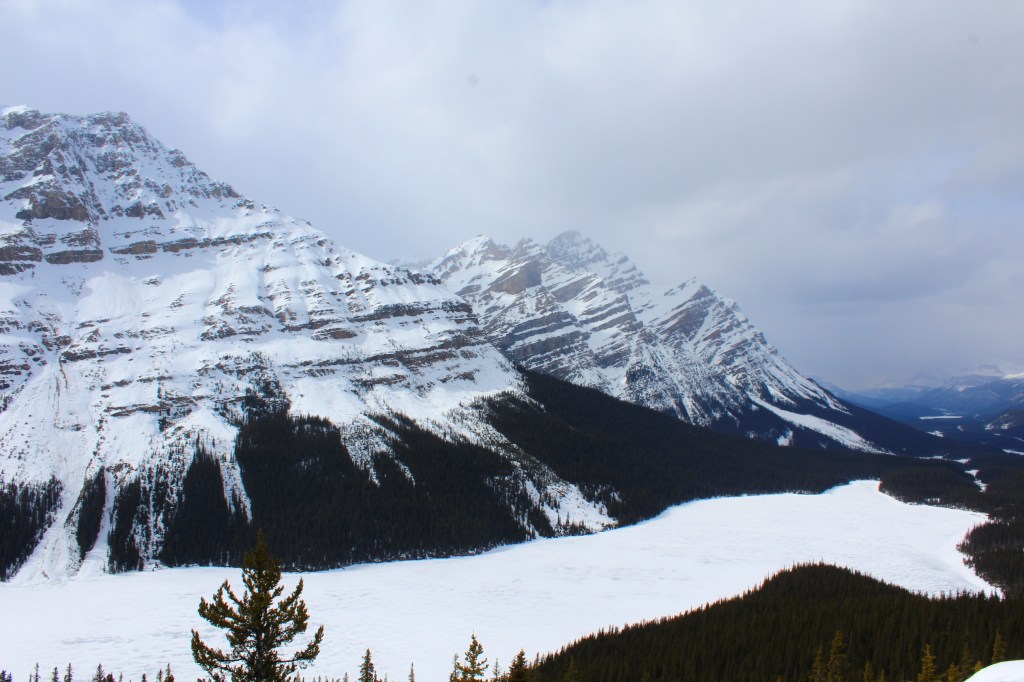 The last stop before Banff (and my personal favourite) was the fairly decent but rewarding trek through snow (once again) to the beautiful wolf-shaped Peyto Lake.