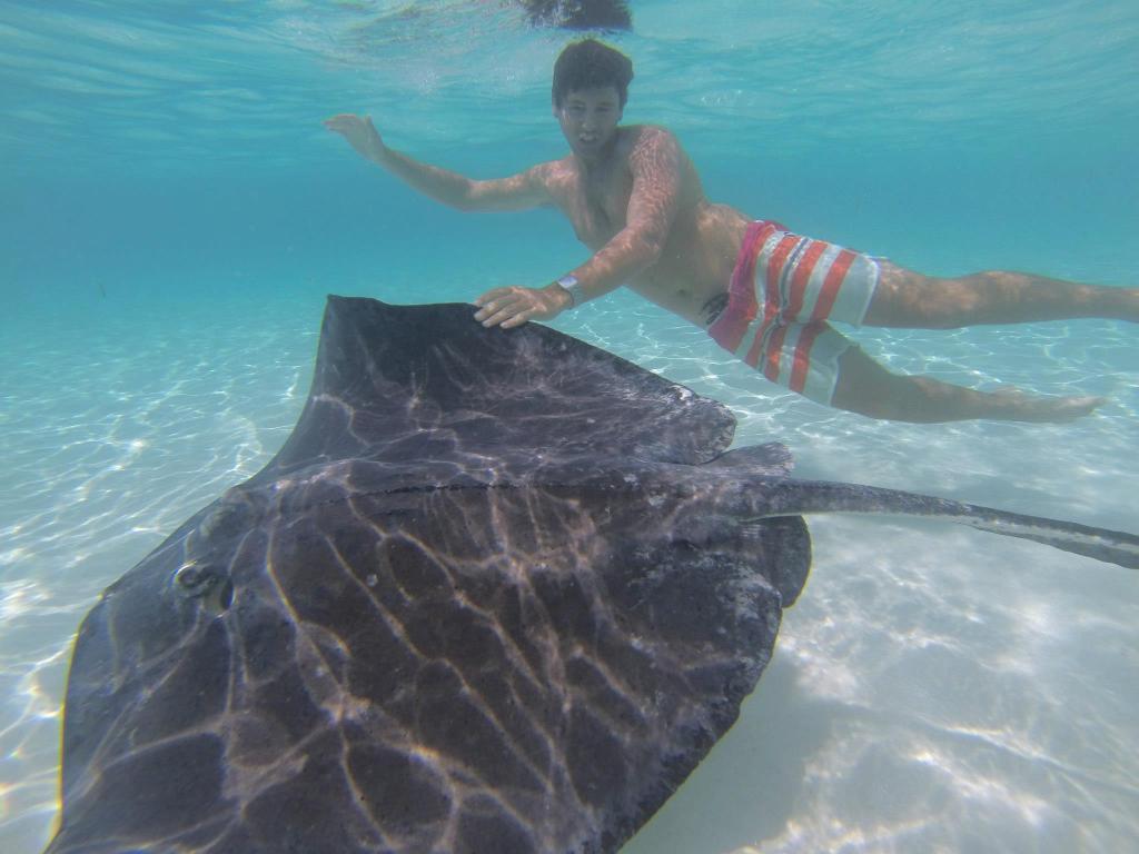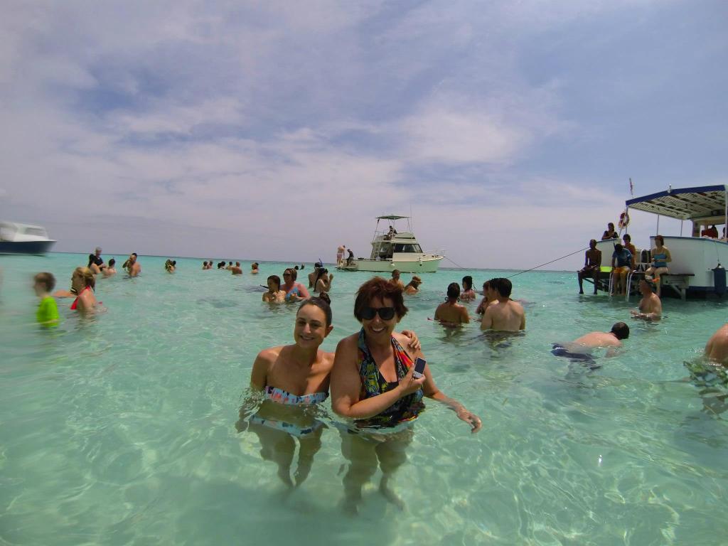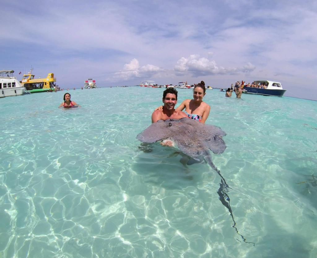 Definitely the highlight of our trip. We waited for Paul and Vanessa at the port, meeting their friends Scott and Penny that they shared a table with at dinner. We booked a tour to Stingray City to swim with wild stingrays – the best day hands down! As Grand Cayman is a British territory, they drive on the left hand side like Australia which felt weird as we hadn’t driven on that side in so long! We were driven to a wharf where we boarded a boat that would take us to the stingrays. It’s amazing how many flooded towards the boat as we arrived, knowing food was coming. We were given hugs, kisses & even back massages from the rays! It felt creepy but awesome as they swam past and brushed our legs. The guides had squid which you could feed to the rays, ensuring it’s in your fist with your thumb inside your hand as they suck the food out.