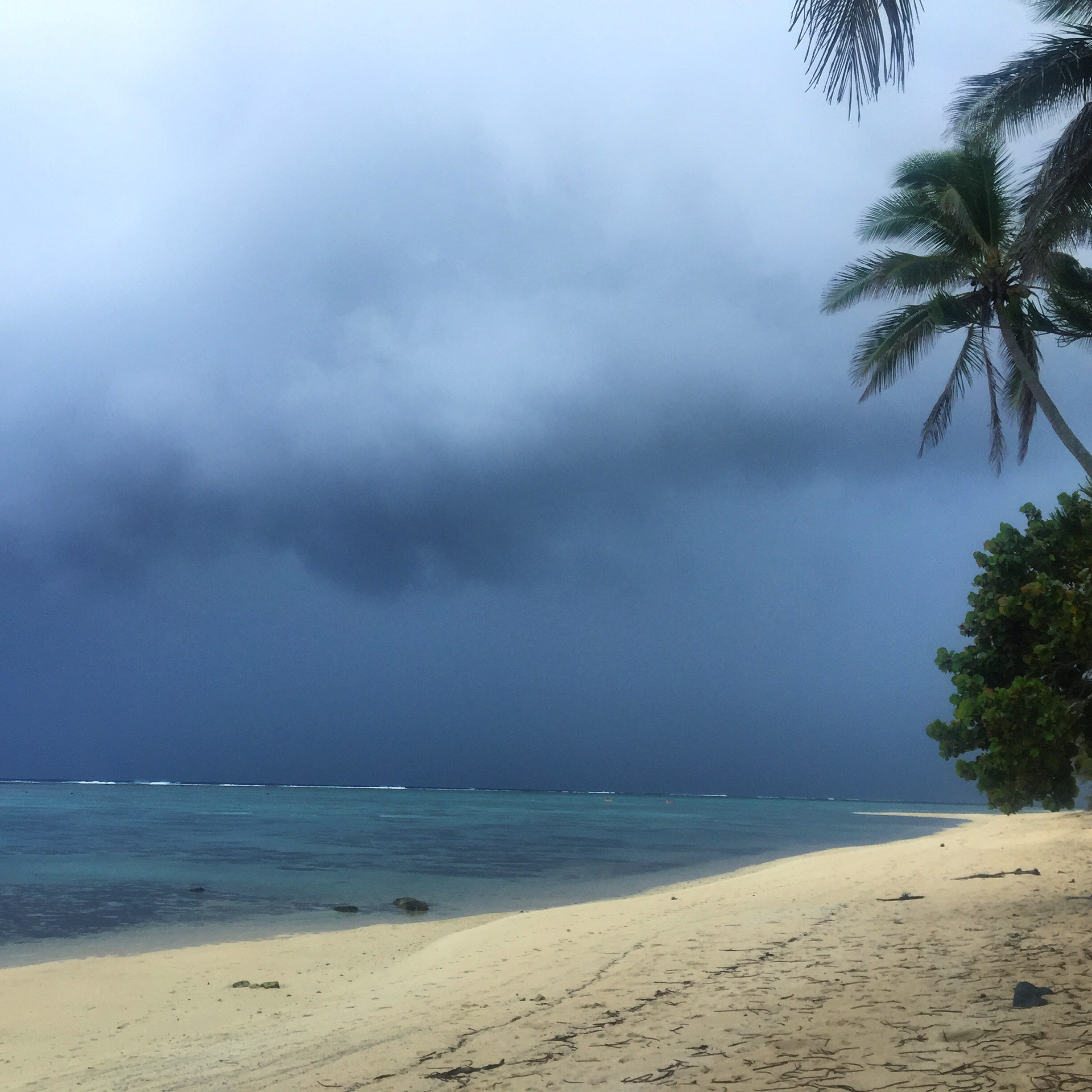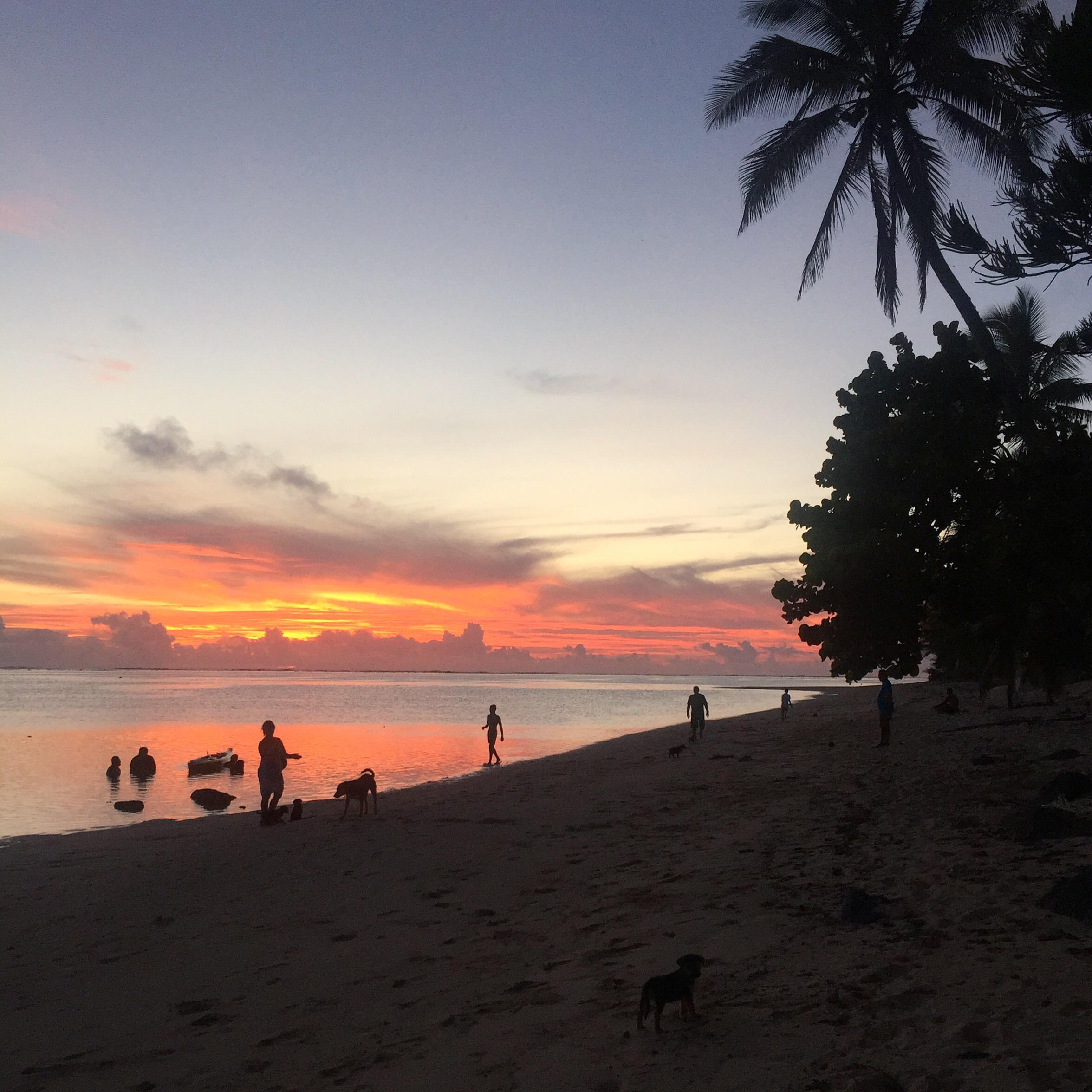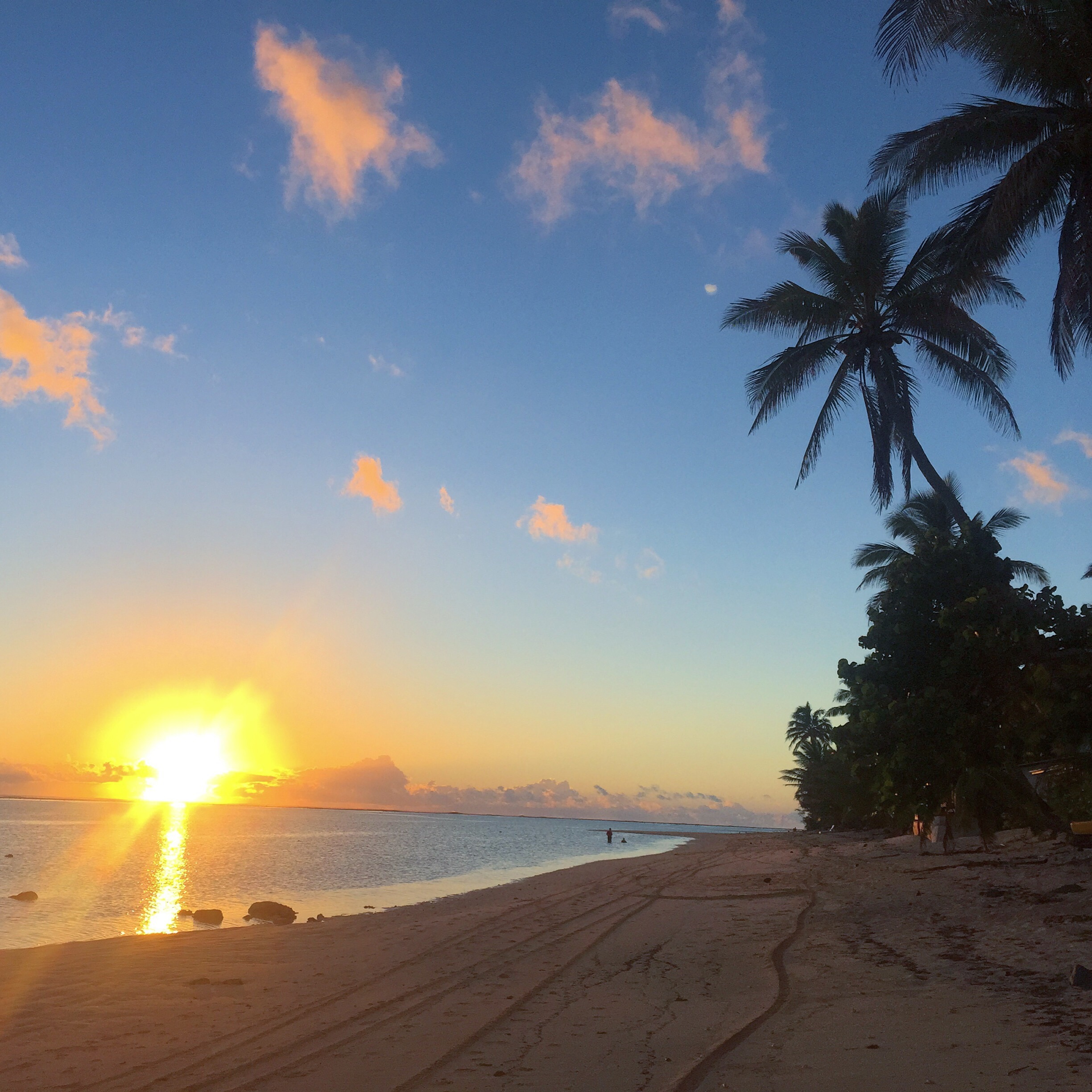 The waves crashed hugely on the reef as we looked out across the water, the sound always reaching my ears a few moments later. Nothing is more peaceful than this sound, a mixture of silence, wind flowing through the palm trees, roosters crowing and waves crashing. As soon as we landed I smelt the smell I didn’t realised I had missed – we were back in the Cook Islands!
