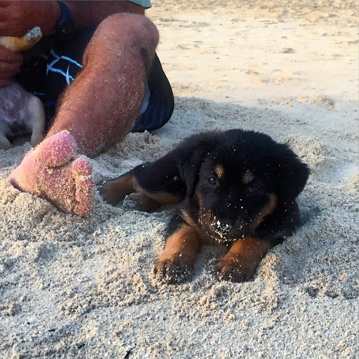 It appears that most of the dogs on the island are still the same, they always seem vicious as they bark continuously but we met 5 of the cutest little puppies taking a walk along the beach. We stopped for cuddles & spoke to the owner before watching a great sunset from our verandah & the staircase that led to the beach beneath it.
