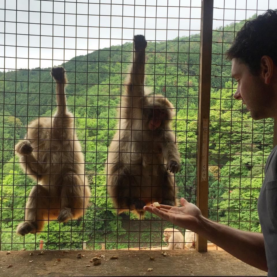 Passing Togetsukyō bridge, we veered right towards the waters-edge to the entrance of the Iwatayama Monkey Park – ¥500 will lead you on a quite intensive (you could say I’m unfit) 20 minute climb up the luscious green mountain where hundreds of ‘wild’ snow monkeys roam the area, awaiting to be fed. Many warning signs will tell you not to look the monkeys in the eyes. It’s a nice twist to common practices as the monkeys are free to roam around whilst us humans need to enter a cage to feed them. Monkey food can be purchased for ¥100 yen including apples & peanuts in their shell. It really is an experience!