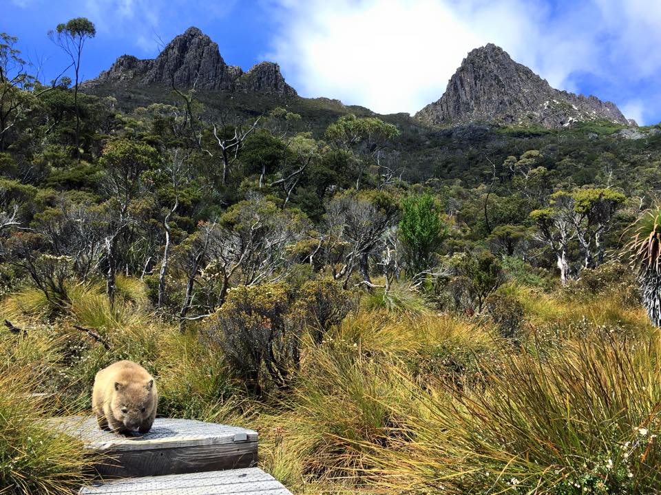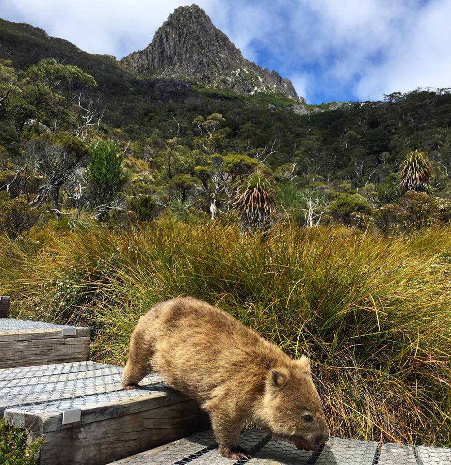 We had packed our lunch and decided to take the opportunity of a bench that sat right beneath the towering peaks of Cradle Mountain when we heard a rustle. The noise made me jump backwards. I thought the worst that the movement would be a snake or some other Australian animal out to get me, but out wobbled a friendly wombat having a scratch and taking no notice of us even being there. We couldn’t believe that no one was around as we took photos of him walking down the path like he was a tourist here to enjoy the scenery – such a cute little guy!