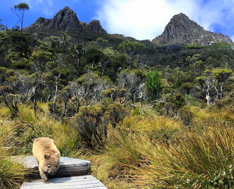 We had packed our lunch and decided to take the opportunity of a bench that sat right beneath the towering peaks of Cradle Mountain when we heard a rustle. The noise made me jump backwards. I thought the worst that the movement would be a snake or some other Australian animal out to get me, but out wobbled a friendly wombat having a scratch and taking no notice of us even being there. We couldn’t believe that no one was around as we took photos of him walking down the path like he was a tourist here to enjoy the scenery – such a cute little guy!