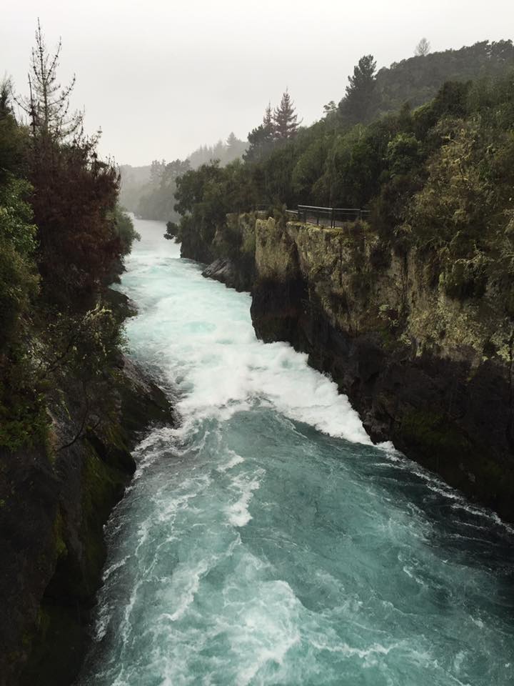 Unfortunately the rain had settled in for our stay in Lake Taupo, so we did miss out on a lot of the sights including the Maori Rock Carvings. The rain did make for a good day at Huka Falls, which is a must-see. The free overnight campervan spot right on the lakes shore is a great spot to stay.