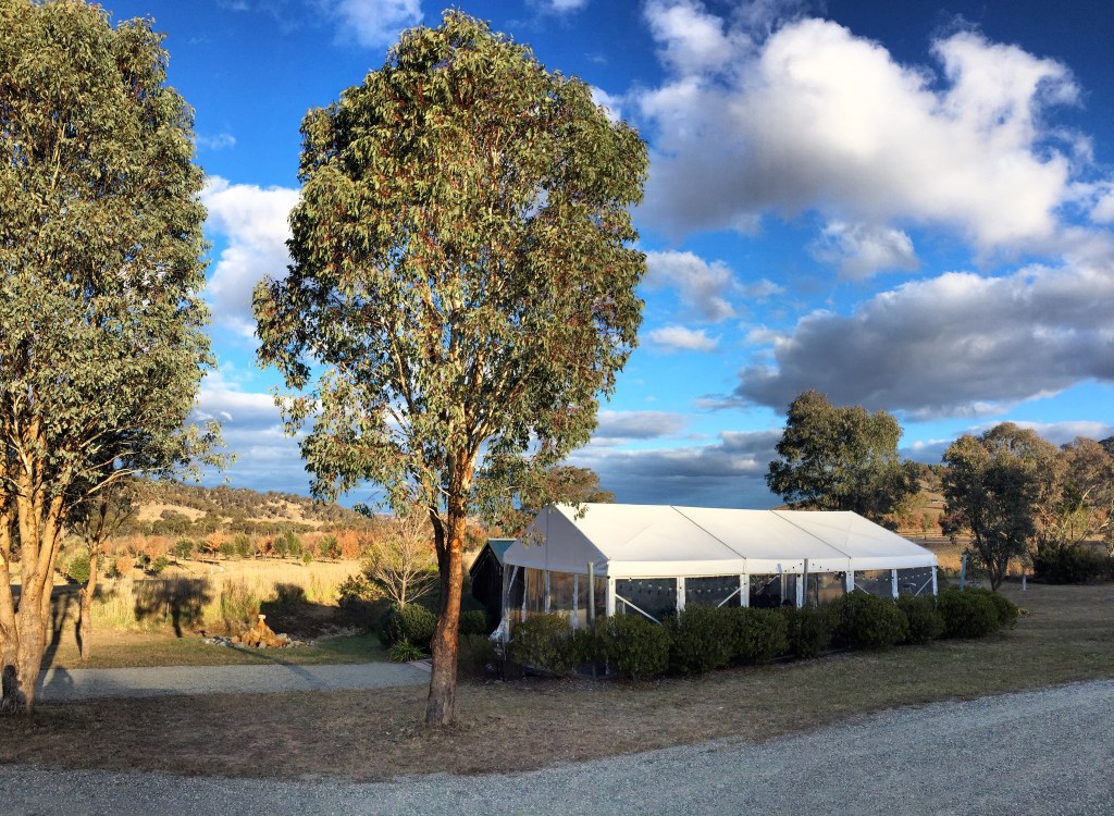 We booked a truffle hunt with degustation lunch at the Truffle Farm and we were not disappointed !! A 5-minute drive from Canberra CBD led us to the entry to the farm and the view was stunning. Set in the most beautiful farm location over-looking rolling paddocks to the views out to the distance, we were seated under the heated marque. Four long tables were set so beautifully we almost thought we were invited to a wedding reception. The tables were strategically set in front of the open kitchen where all the magic would happen later in the day. We were introduced to Jason, the owner and founder of The Truffle Farm, and of course the important (and most exciting) guest of the day – Samson, the truffle dog. We learnt all about Jason and Samson’s journey together, how the truffle farm all came about and that the Truffle Farm’s logo was indeed Samson! They truely were an awesome team.
