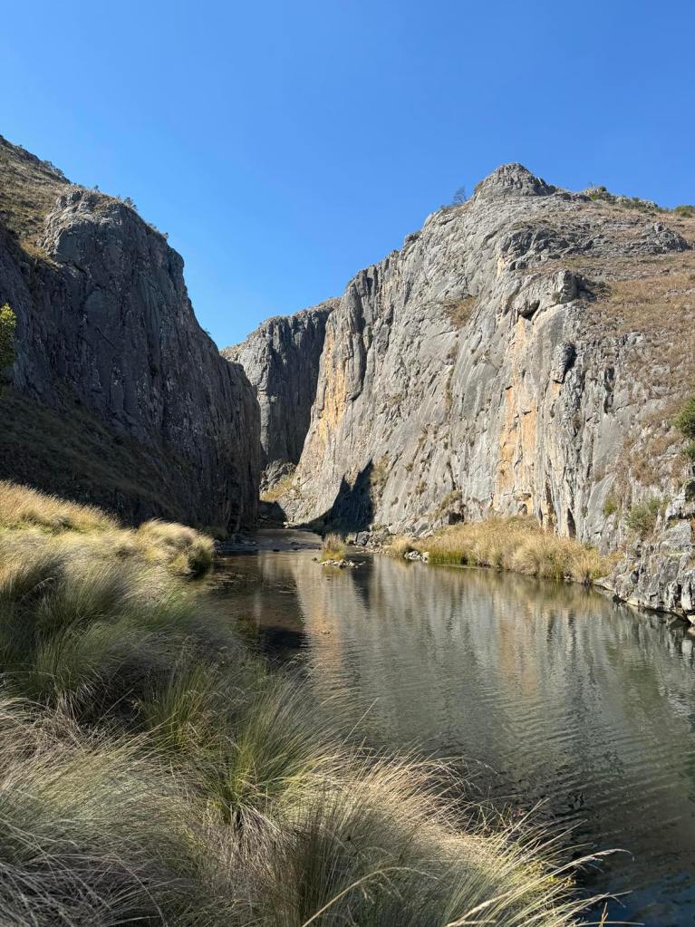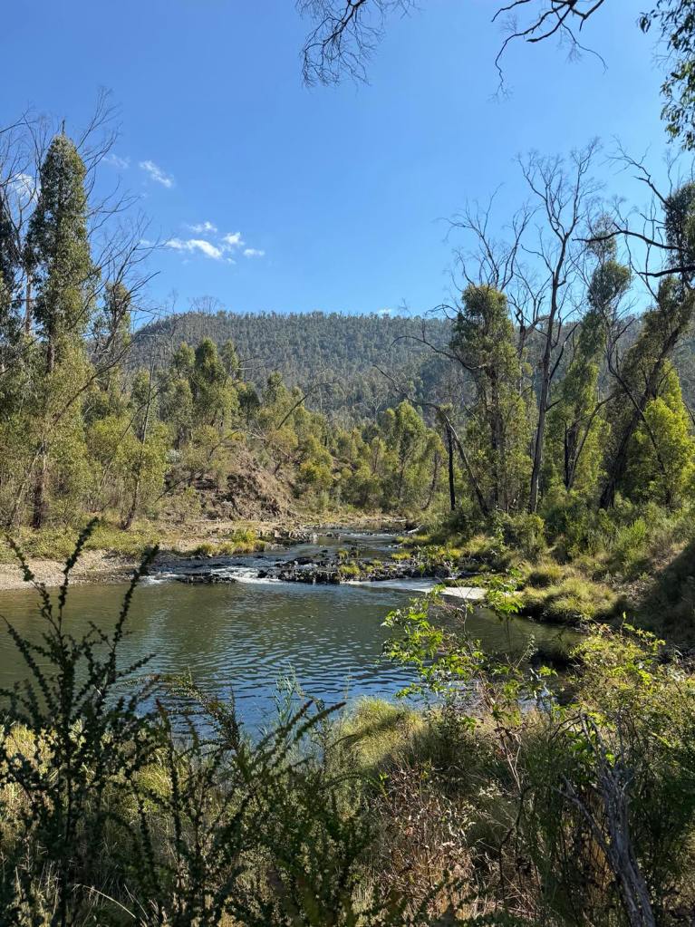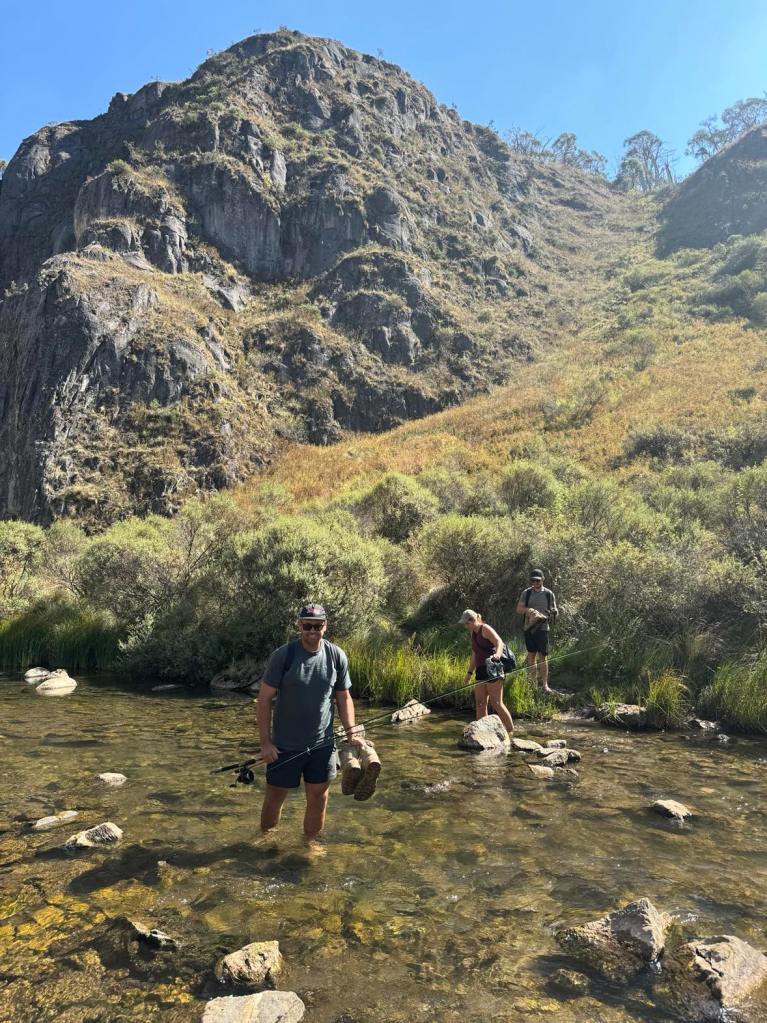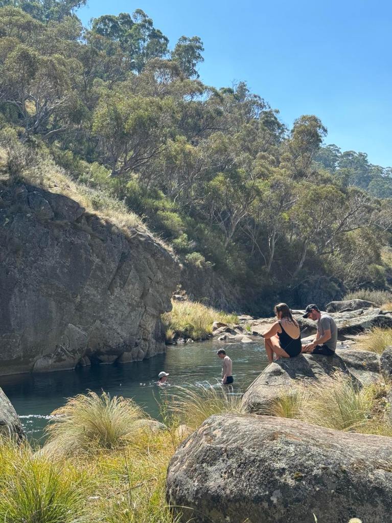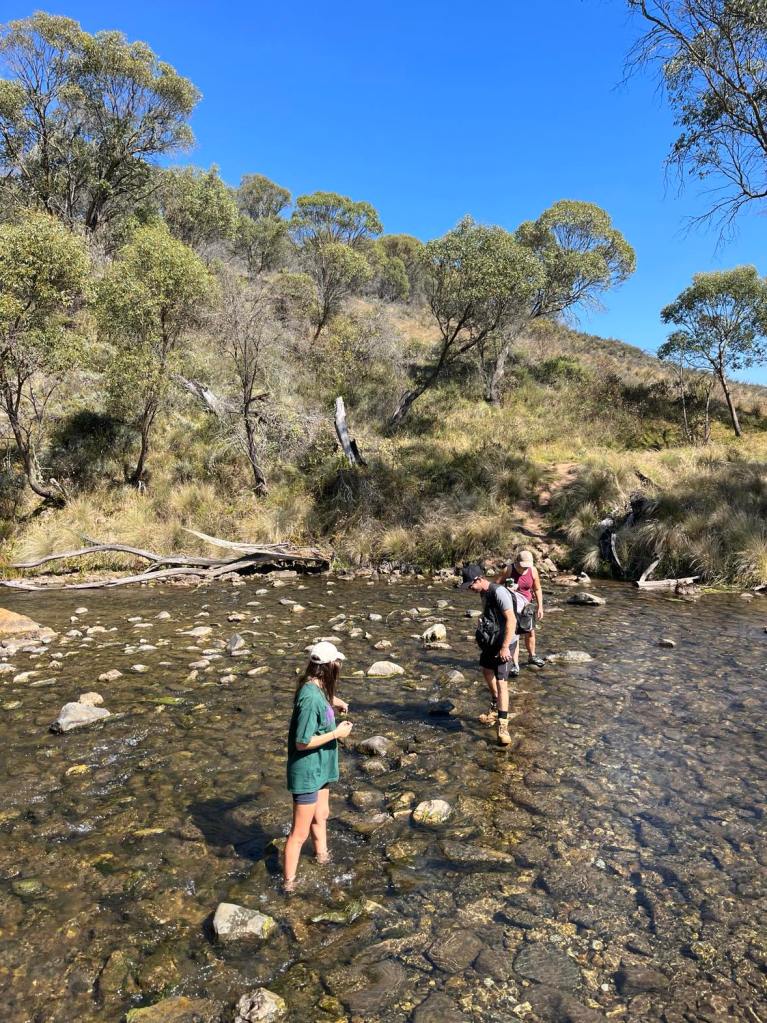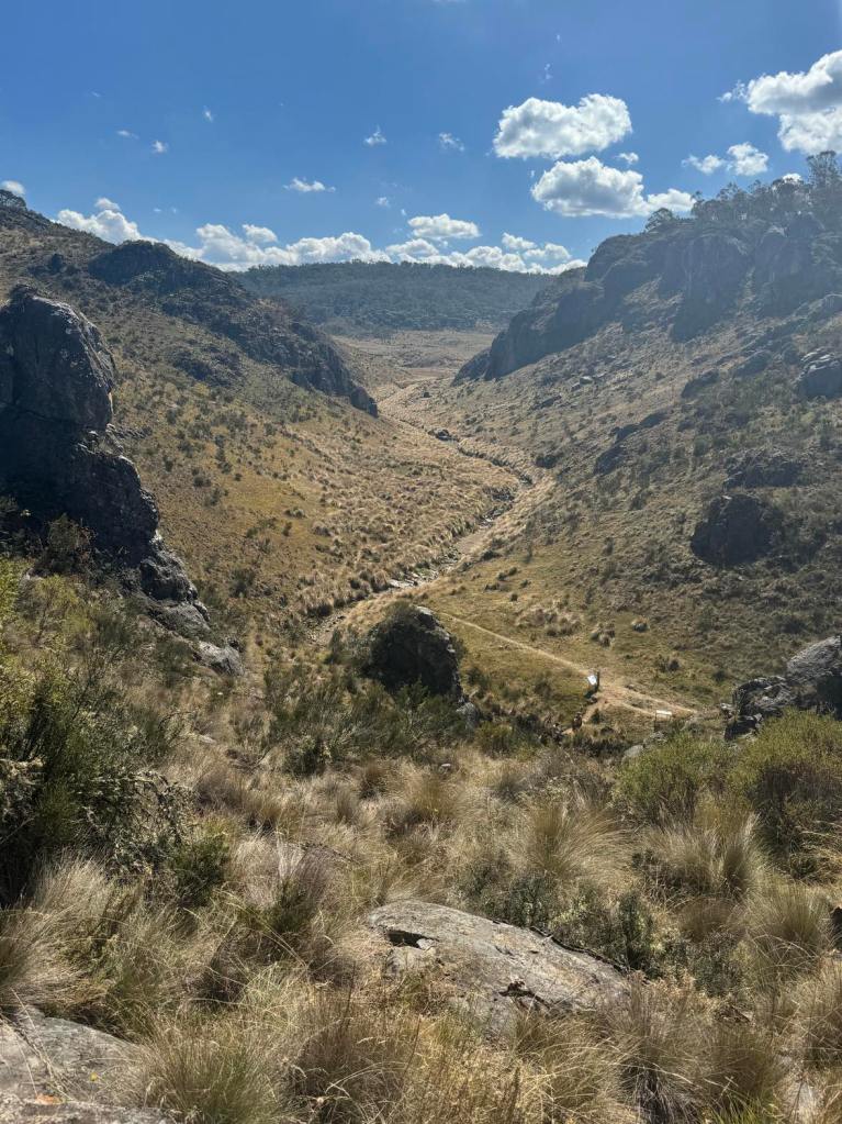 Clarke Gorge walk starts from the Blue Waterholes campsite and heads down to Cave Creek and your first water crossing. The 5km return walk follows the creek downstream through limestone gorges and cave formations towering either side of you as you meander through the many river crossings before arriving at the most stunning waterfall. There are many opportunities for a fly fish or a swim along the way if you can brave the icy cold waterholes. With around 9 river crossings to pass through, it is a good idea to wear water shoes or something you can easily take off and put back on as each crossing can be deep, slippery and not so easy to stay dry. I found my reef boots to be the perfect option. Keep an eye out for wild brumbies and kangaroo’s that frequent the area, along with many bird species and trout. Even though it’s only a 5km walk, it is a grade 5 meaning it does take a lot longer than a usual hike of that distance due to the amount of water crossings. Whilst there are no real steep climbs, there is a (optional) scramble down to the bottom of Caves Creek waterfall / Cooleman Falls which isn’t signposted but totally worth it for the waterfall swim. It also made the perfect lunch spot with stunning views down Wilkinsons Gorge.