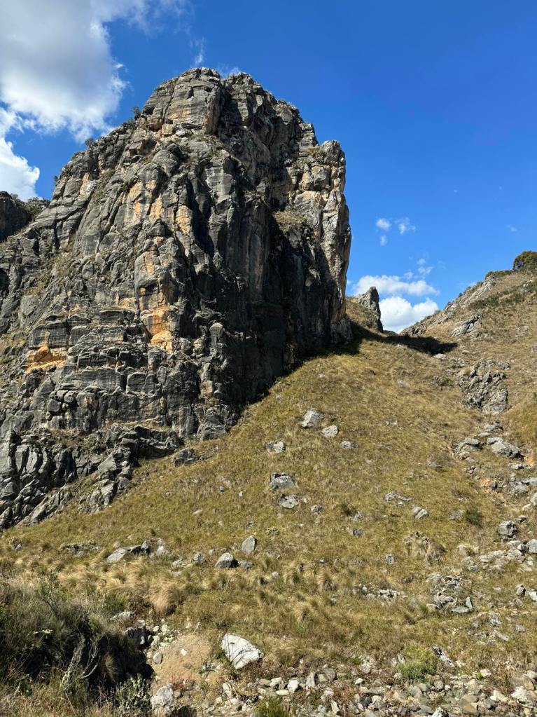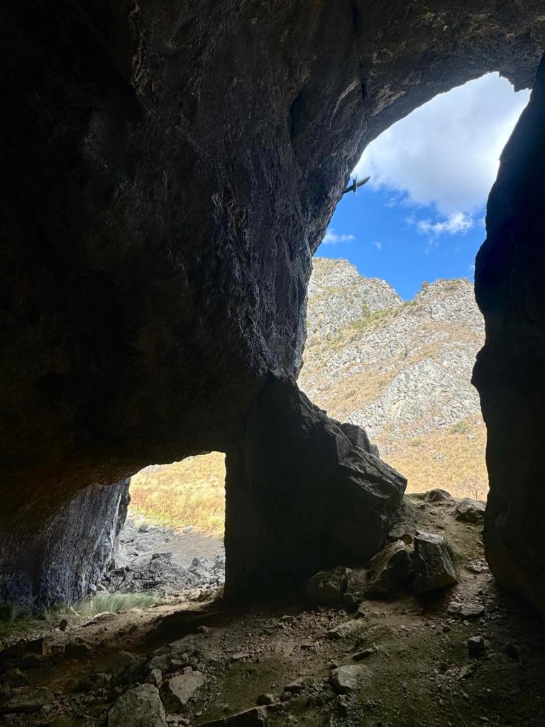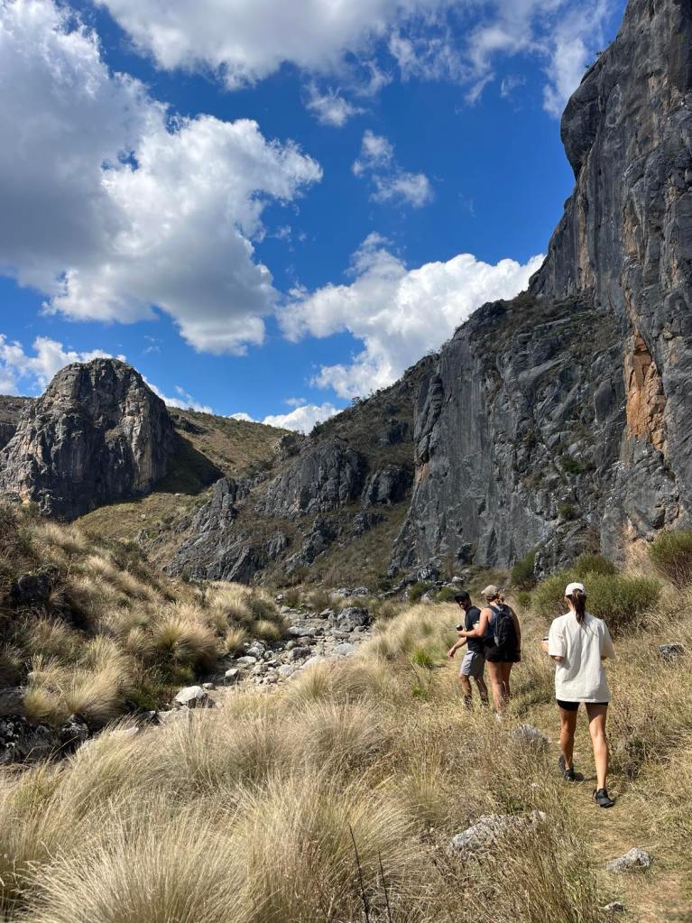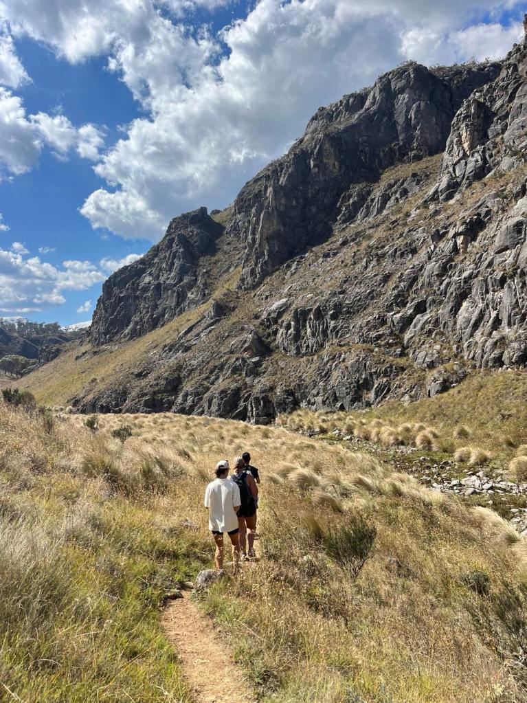 We set off from Magpie Flats campground and head up hill, as we were told it would be easy going this way instead of from blue waterholes. The beginning of the track leads through grassy fields. Keep an eye out for snakes and brumbies! The trail leads through dry creek beds. No wet shoes required. It won’t be long and you can see down Nichols Gorge to the left, resembling scenes from Lord Of The Rings. We continued straight along the signposted walk, meandering our way up to the top of the ridge where we spot our first brumbies on the walk. We sent up the drone and the views were amazing. We did sadly come across some brumby caucasus that seem to have been long gone. As the walk gets closer to Nichols Gorge, you’ll find a rocky cliff in which you have to scramble down to reach the bottom and it’s where you’ll find the first cave – Cooleman Cave. Grab your head torch as the cave is dark and damp and seems endless. We walked as far as we felt comfortable before turning around. As you enter back into daylight, you’ll be met with a fork in the road. Turning left would lead you through the gorge, back to where you almost started from but the real gem is turning right. From here you are lead through dry creek beds with large limestone cliffs towering next to you. Another pinch-yourself moment. We stopped for lunch and a refuel before continuing on the windy trail. We explored Murray Cave that had two large arches showcasing the beautiful blue sky outside. Not far from here is the Blue Waterholes and the short walk back up to the campsite.