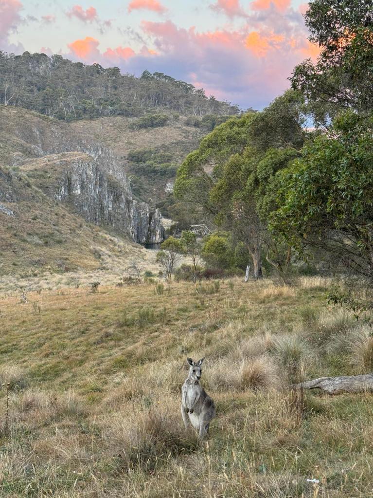 Both sites are completely off-grid so you need to be self sustainable, except for the usual national park dropbox facilities and some fire pits depending which site you book. You will need to bring your own firewood & toilet paper. There is no reception in this area so you really get to disconnect and enjoy your surroundings. Many birds and kangaroos joined us at the campsite, along with the sound of howling dingos or wild dogs that could be heard at night. We didn’t see any brumbies at the campsite but I read that it is common. You don’t need a 4WD to access these campsites however if it has rained recently then you may find the dirt roads difficult to drive.